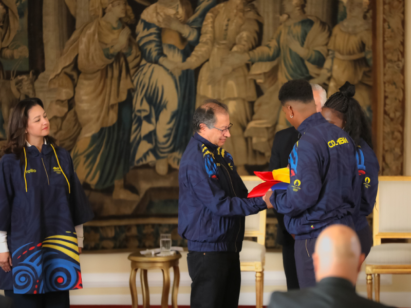 El acto simbólico de entrega de la bandera colombiana, que se realizó el pasado 3 de julio y que fue presidido por el Presidente Gustavo Petro y la Ministra del Deporte Luz Cristina López Trejos. Los abanderados para la ceremonia de inauguración en París serán la lanzadora de jabalina Flor Denis Ruiz y el ciclista de pista Kevin Quintero. Durante la ceremonia, Ciro Solano Hurtado, presidente del Comité Olímpico Colombiano, destacó los 88 años de fundación del COC y la histórica participación de 88 atletas colombianos en las justas de París 2024, con una notable representación femenina de 57 mujeres frente a 31 hombres.