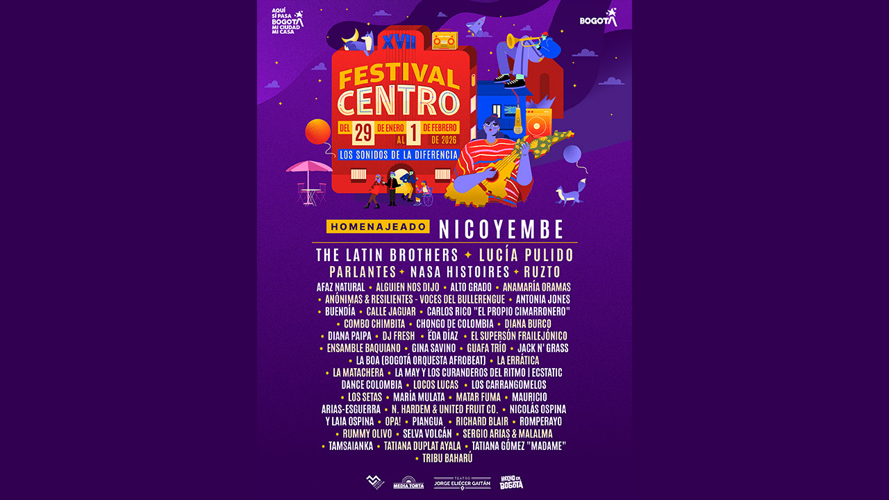 El Festival Centro 2026 presenta un cartel imperdible que confirma al centro de Bogotá como uno de los territorios culturales más vivos del país. Del 29 de enero al 1 de febrero, la ciudad vibrará con una programación que reúne artistas, escenas y lenguajes musicales que cruzan el rap, el rock, la cumbia, el jazz, el punk y múltiples fusiones contemporáneas.